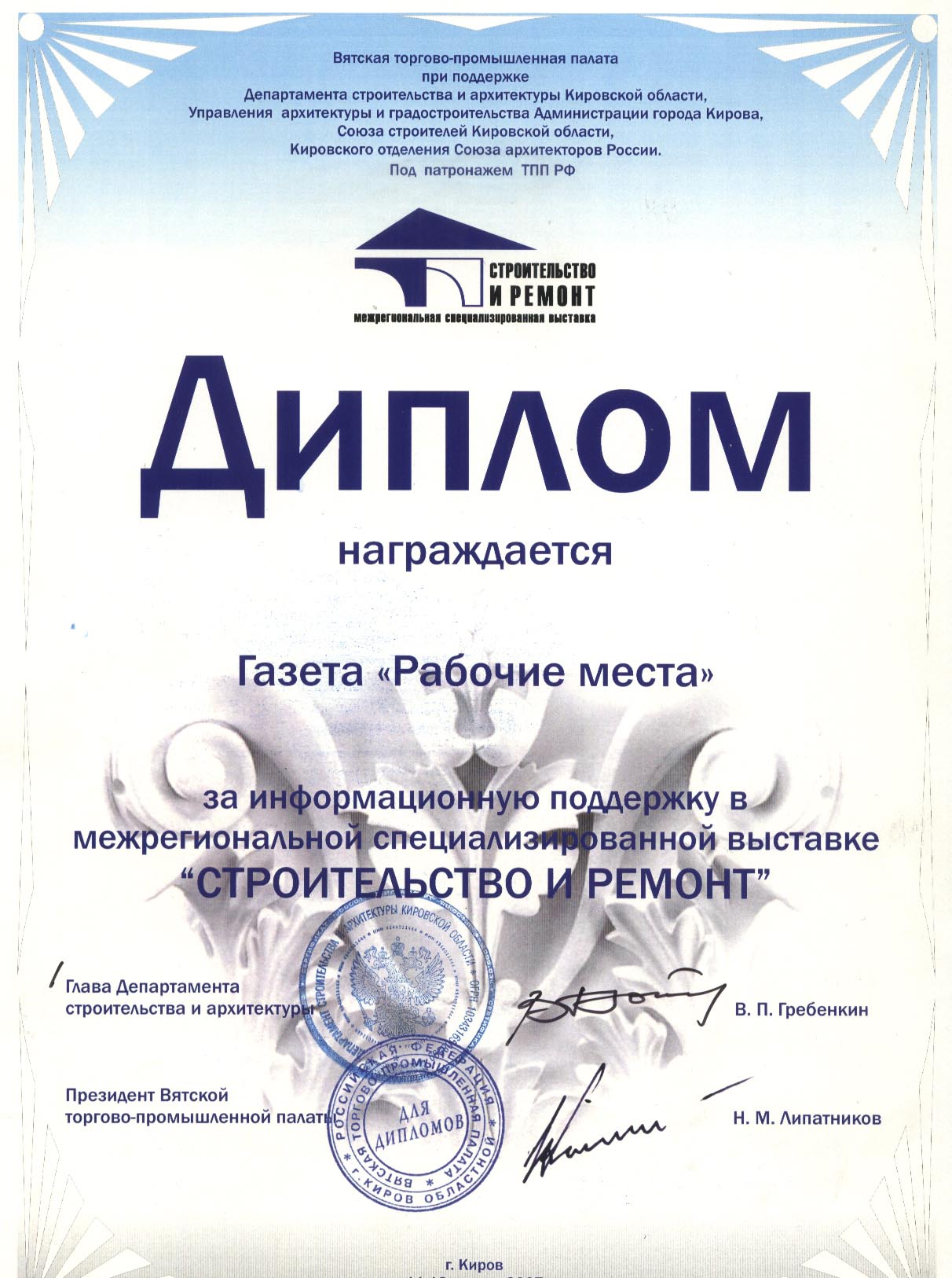 Газета «Рабочие места» — деловое специализированное издание о работе в Кирове, ориентированное на соискателей, ищущих работу, а также специалистов отделов кадров, кадровых служб и руководителей предприятий и организаций.